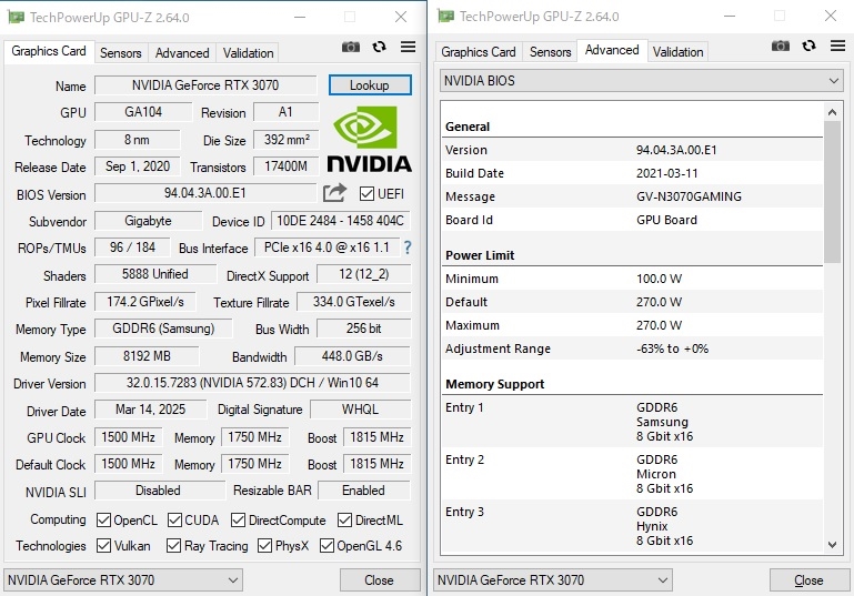 RTX3070 GPU-Z Power Limit表示