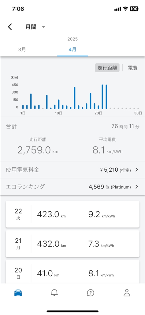 『日別電費』 タイヤすべて らぶくんのパパさんのクチコミ掲示板画像1/2