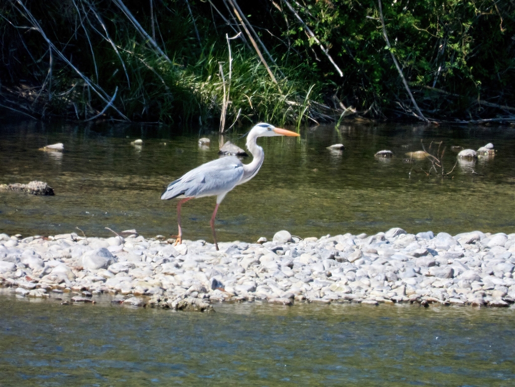 防衛本能に基づく保安距離を確保して地上に降りたアオサギ 換算@2000mm