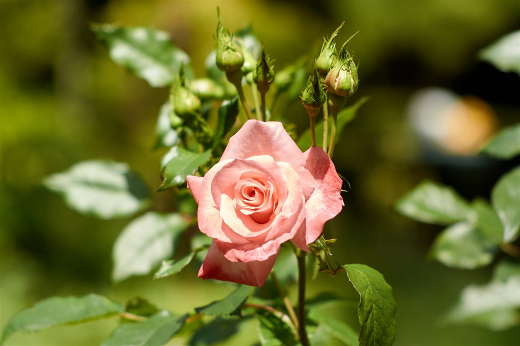 5月初旬の公園の小型の薔薇