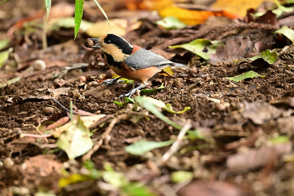 木の実を拾うヤマガラ