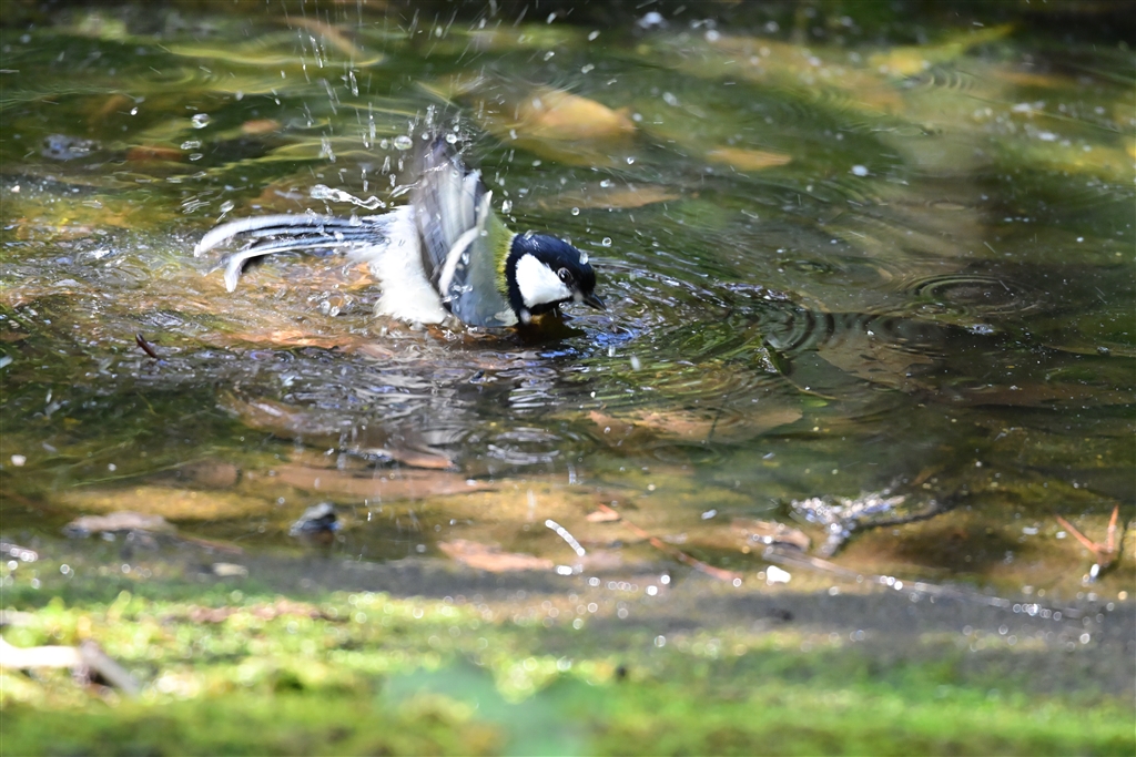 シジュウカラの水浴び