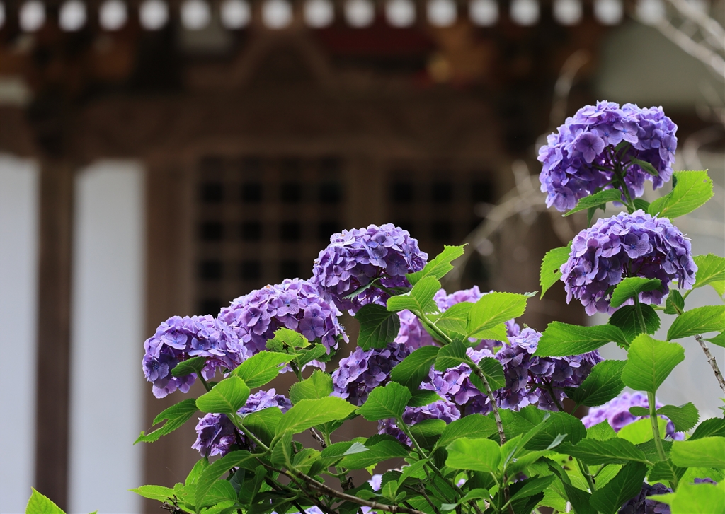 地蔵堂の前に咲くアジサイ