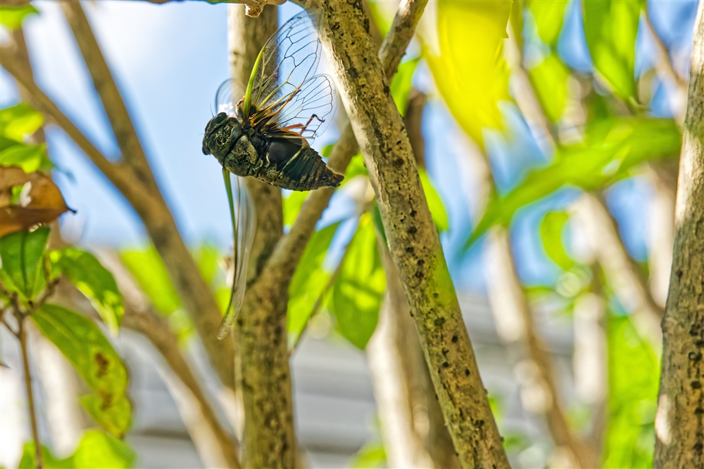 R6の電子シャターではときとして激しいローリングシャッター歪が出る(左の翅に注目)