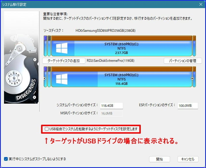 ターゲットディスクを選択する