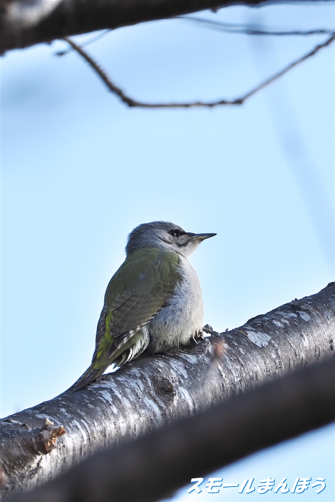 ヤマゲラのメス、最初は枝被りの場所にいました