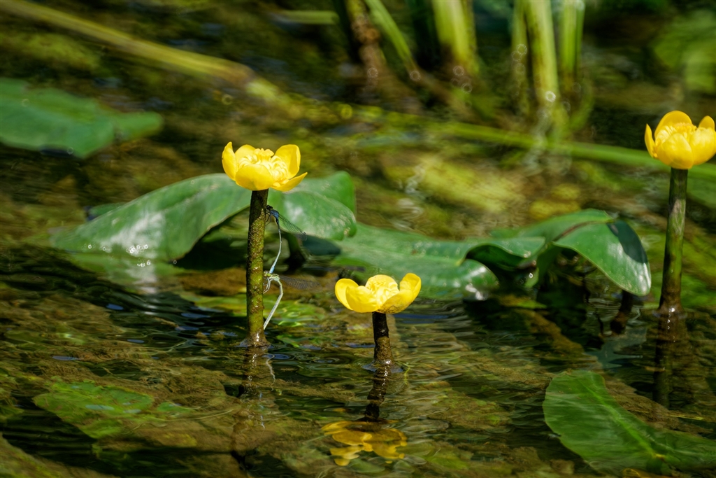 野山を行けば・・・水中花が咲き初め、イトトンボが愛の交換してました