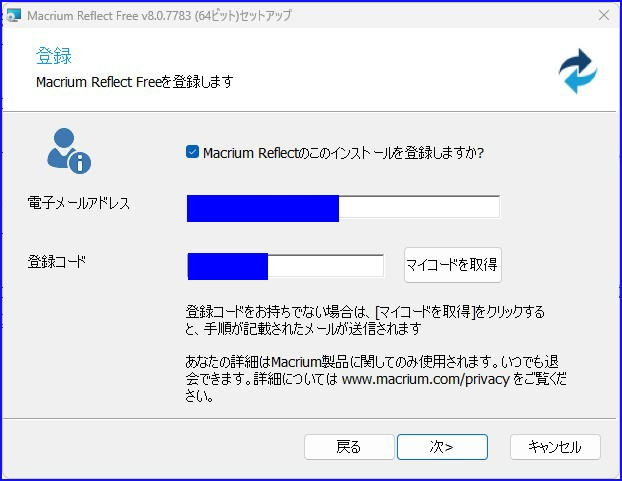 登録コードの入力が必要