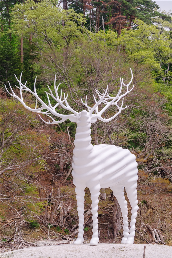 震災からの復興を祈念した宮城県牡鹿半島のWhite deer