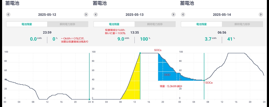 『残量の推移グラフ(雨後0%⇒100%充電⇒6割放電)』 太陽光発電 なんでも掲示板 りゅ774さんのクチコミ掲示板画像1/2