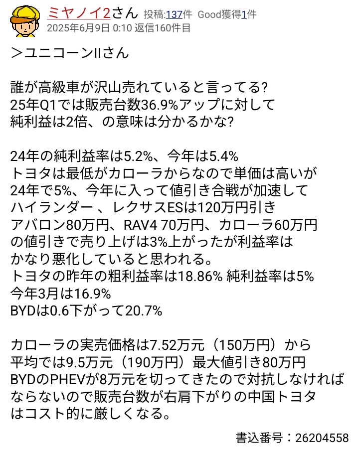 『BYDが値下げできたりや安くできる理由』 自動車(本体) ニックネーム全角1500文字は必要さんのクチコミ掲示板画像1/1