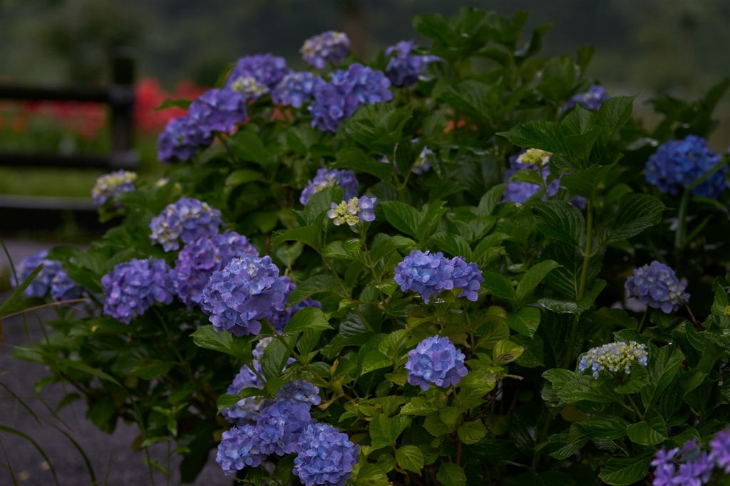 そぼ降る雨の日の夕方のアジサイ−1