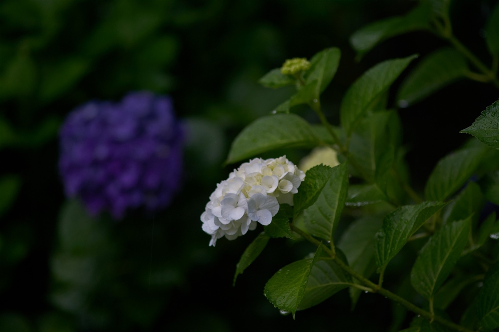 そぼ降る雨の日の夕方のアジサイ−7