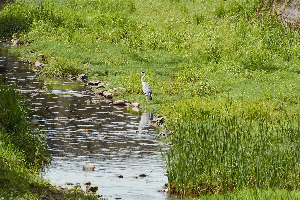 アオサギは暑くても付き合ってくれました