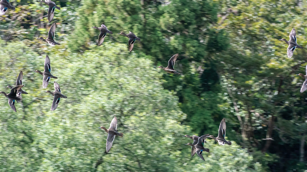 カモ飛翔 1 NIKKOR純正レンズだと照準範囲が広くとれて便利な場面ですが