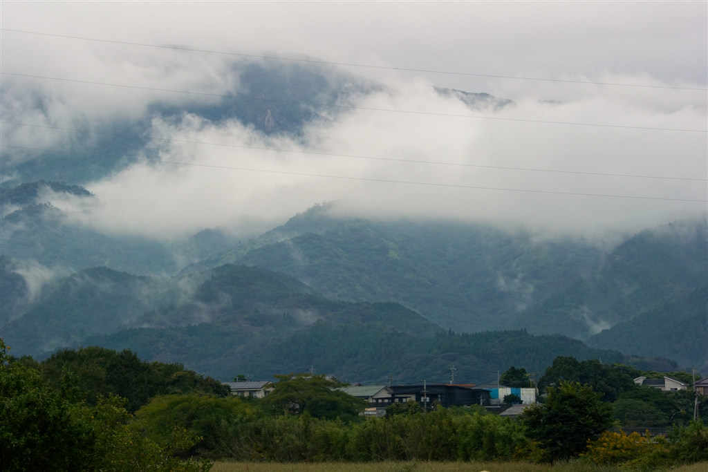 数キロ先の住宅街とその背景の山をワイド端70mmで