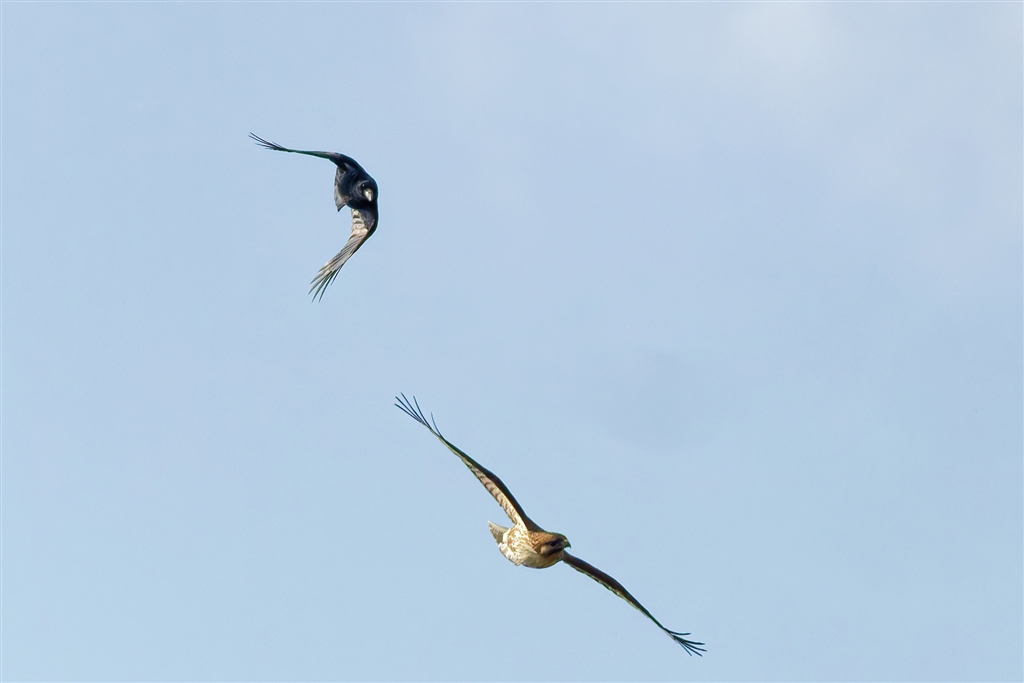 ノスリとカラス 仲良く喧嘩しな-2
