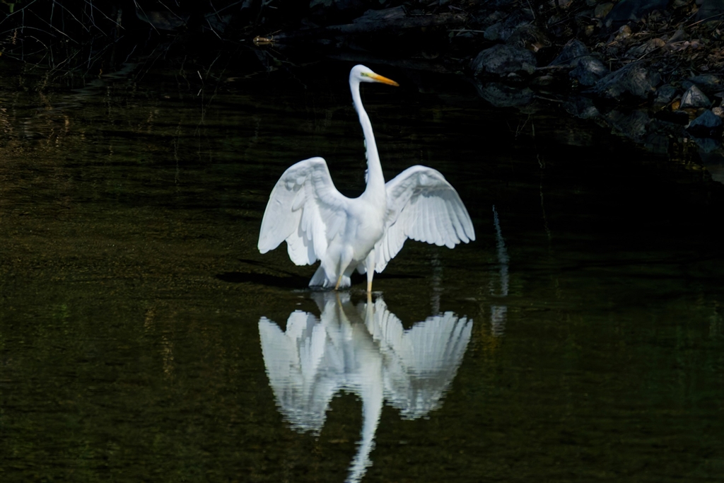シラサギが小魚を追っていました