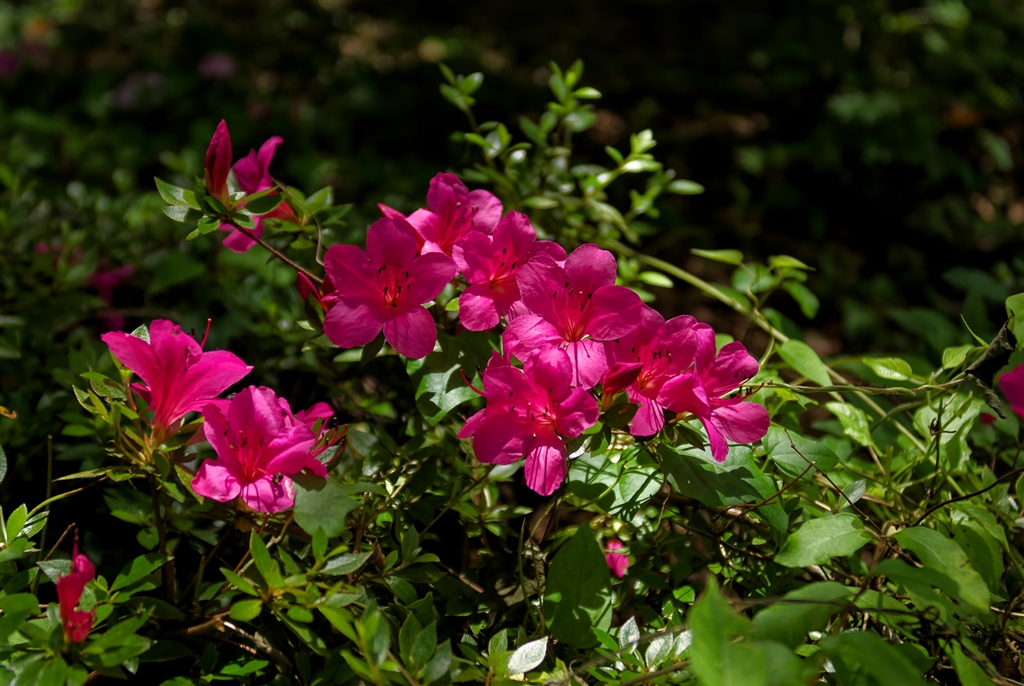 木陰の中のツツジにはっと目を奪われ