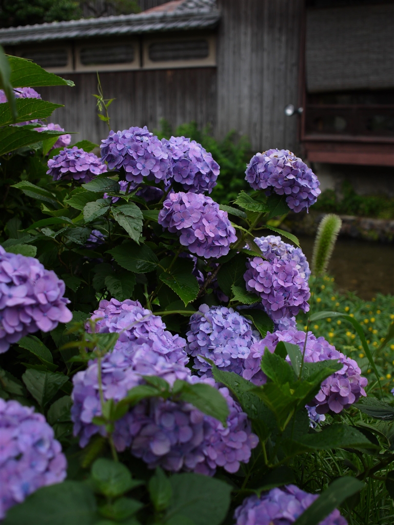 祇園白川に咲く紫陽花。