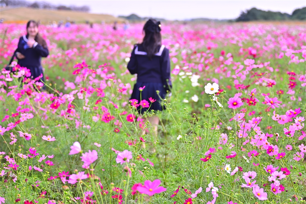 セーラー服とコスモス畑