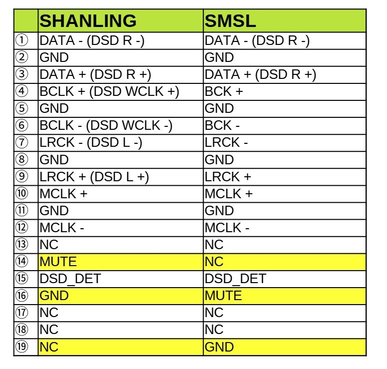 SMSL Shanling I2Sピンアサイン
