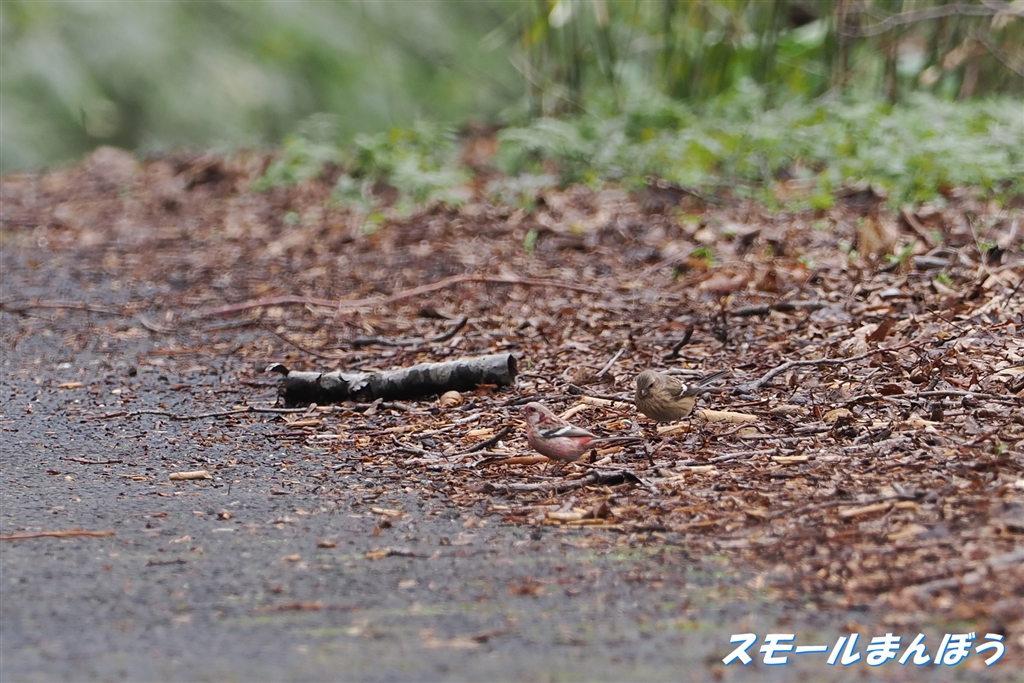 もっと近くで撮りたかったんだけど・・・なベニマシコ(左:オス、右:メス)