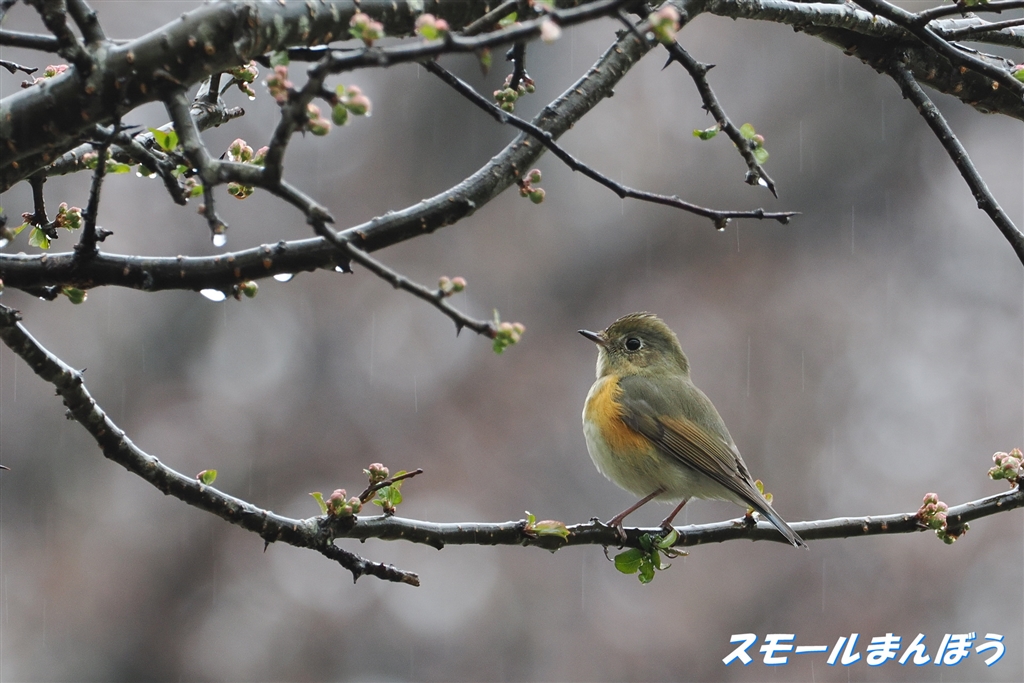 雨の中のルリビタキ(メス色タイプ)