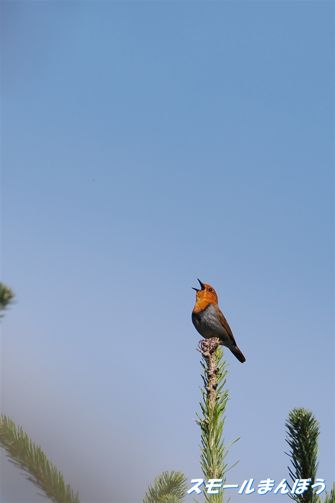 やっと見つけたコマドリは高く&遠かった