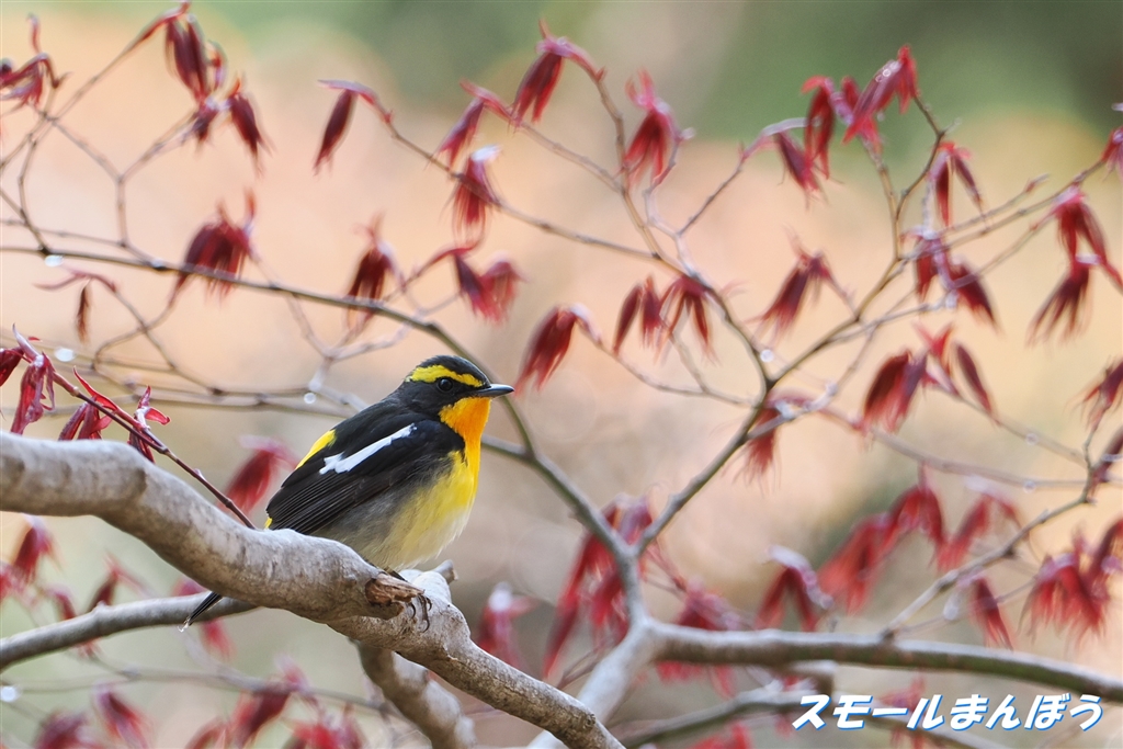 モミジの新葉をバック・・・なキビタキ