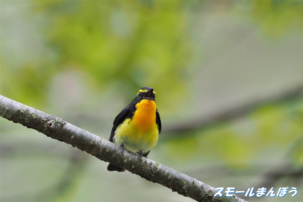 囀るキビタキ