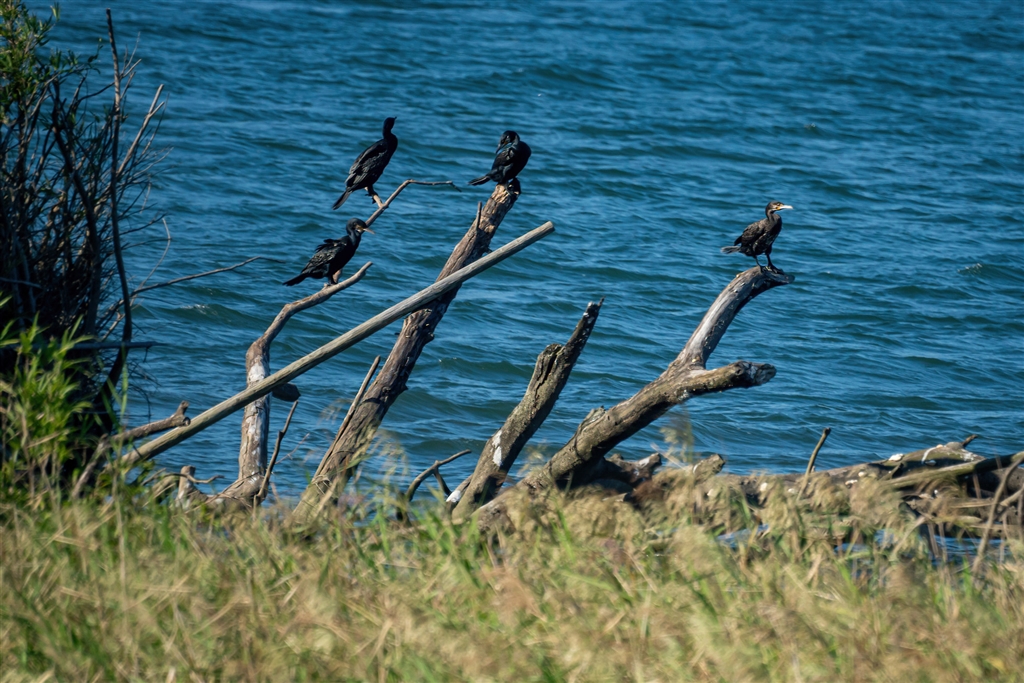 騒々しかったカワウがひっそり閑として止まり木に宿る様を観て秋を感じ