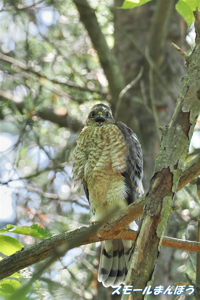巣立ったハイタカの幼鳥が鳴いていました