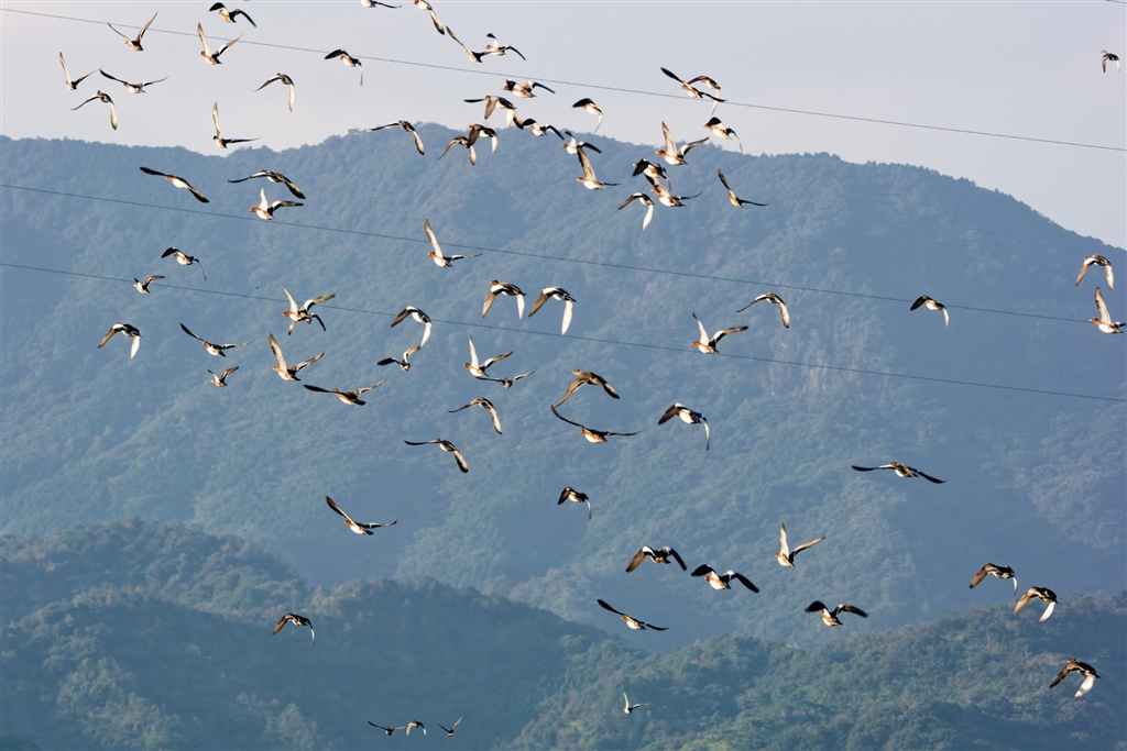 NIKON 1 V3/FT1/AF-P NIKKOR 70-300mmにて やっとカモの群れが飛び始めた