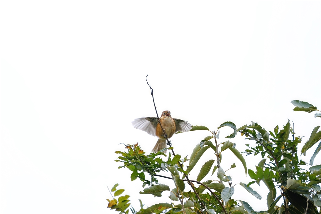 羽をバタづかせながら鳴いていました モズ