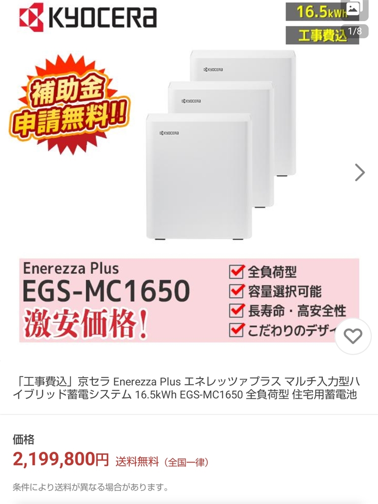 『蓄電池のみの工事費込み通販価格例』 太陽光発電 購入相談 りゅ774さんのクチコミ掲示板画像1/1