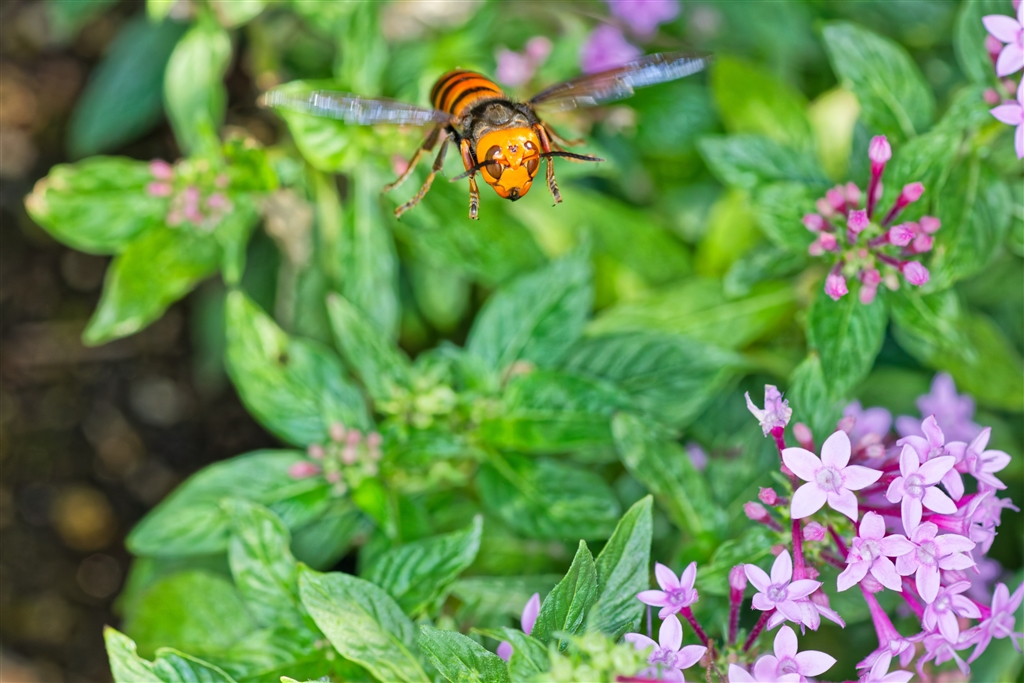強面のスズメバチだが撮りかたによっては絵になる(レンズを近づけると向かってくる)