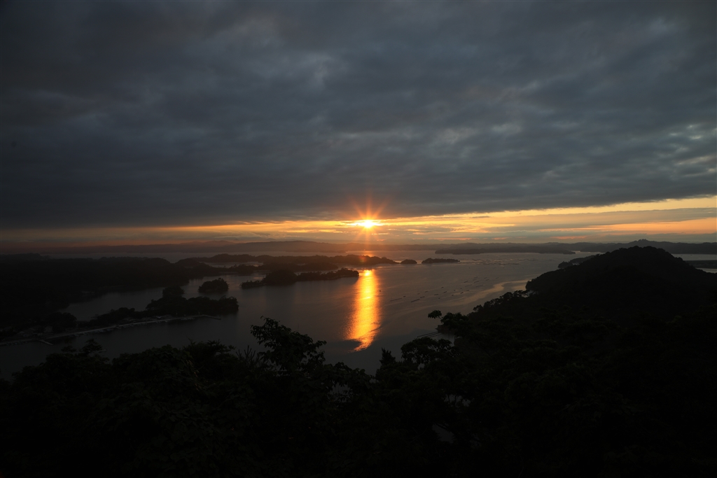 1時間かけて登って撮影した奥松島も多くの雲が・・・(夕日)