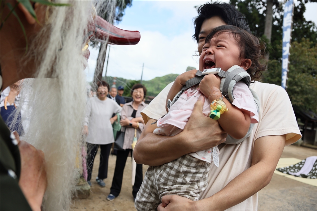幼児は初めて見る天狗に大泣きする(ノーファインダー撮影)