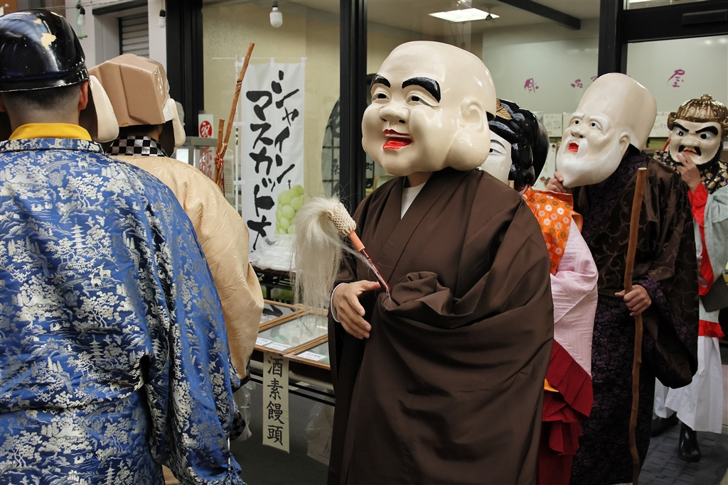 くわな寺町通り商店街を練り歩き氏子店舗に七福神祈願する