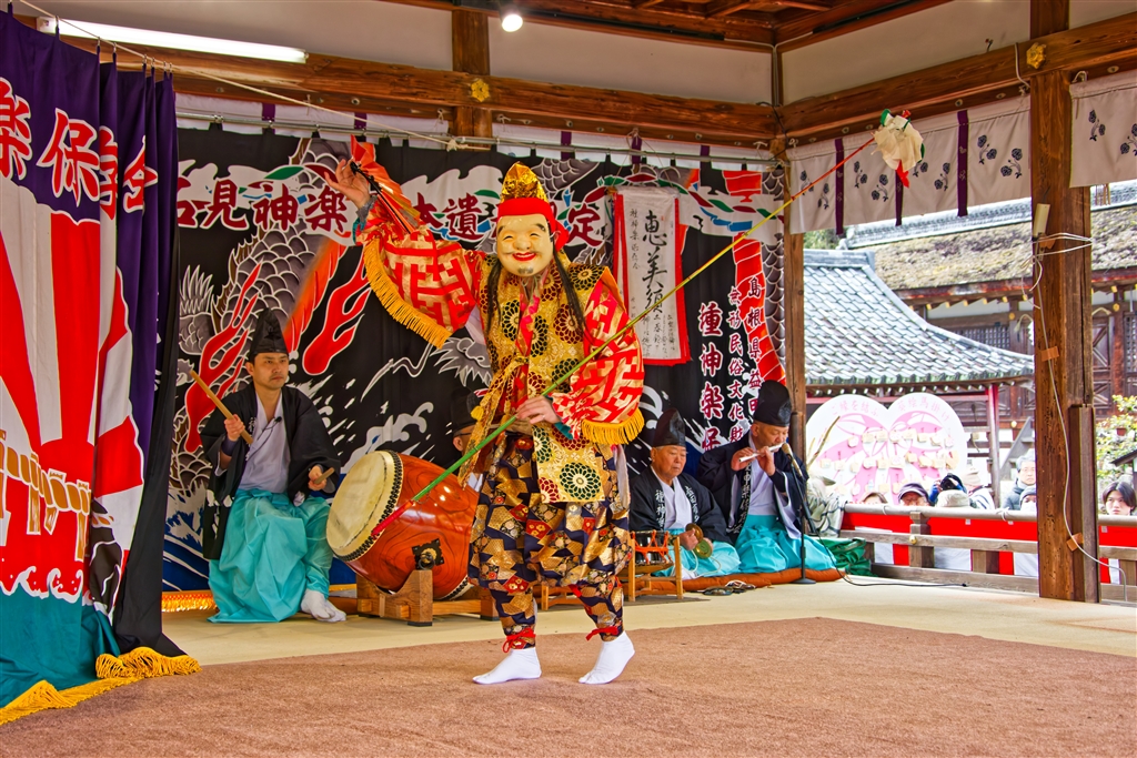 「恵美須」は石見神楽の重要な演目で商売繁盛や豊漁に縁起がよい