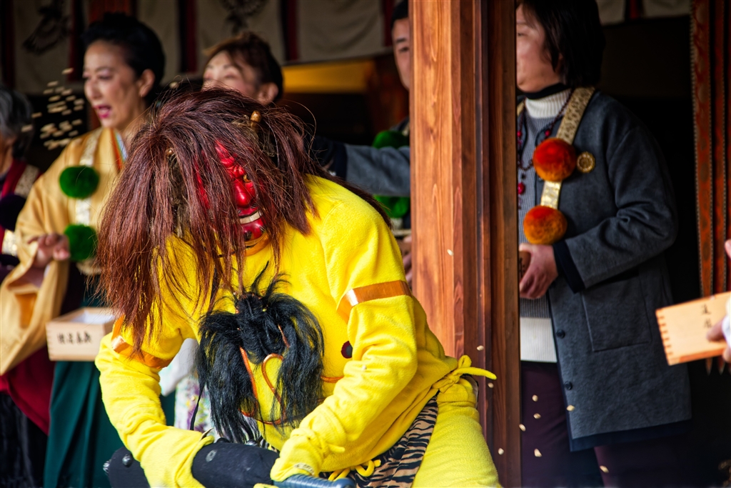 豆を撒かれタジタジになった鬼(聖護院の節分会で)