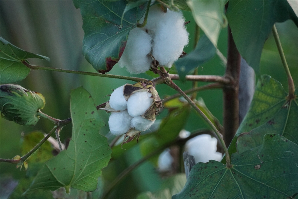 綿の実が熟れて弾け