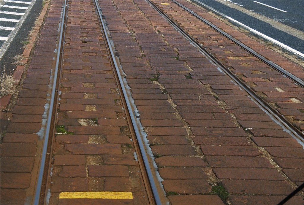 歴史がつもったような路面