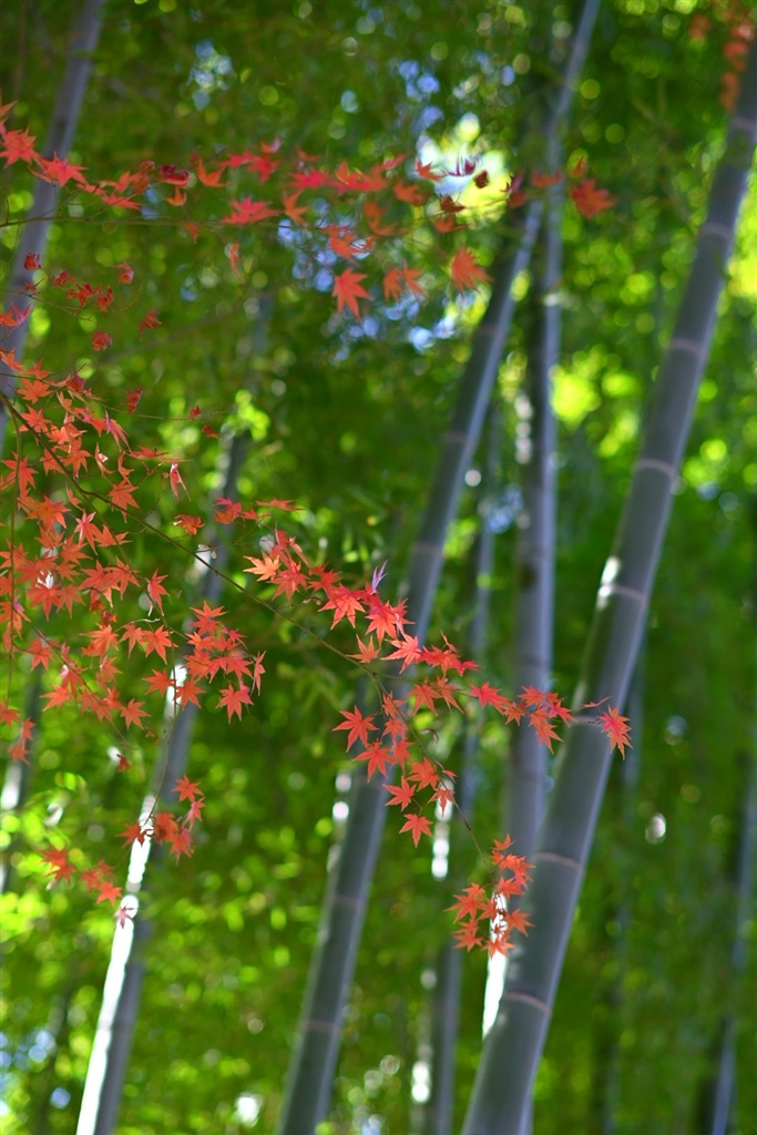 竹林に紅葉