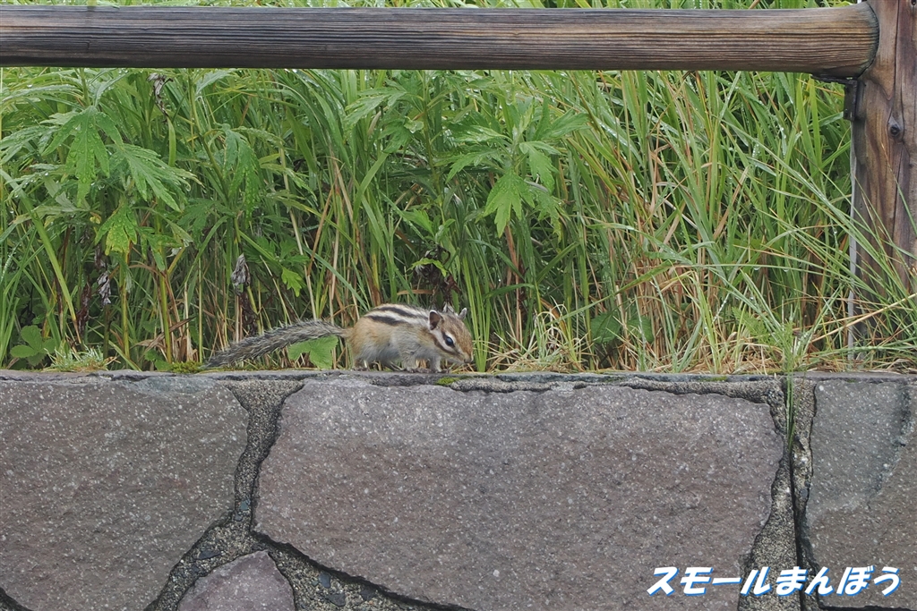 駐車場を見たら、エゾシマリスがいました