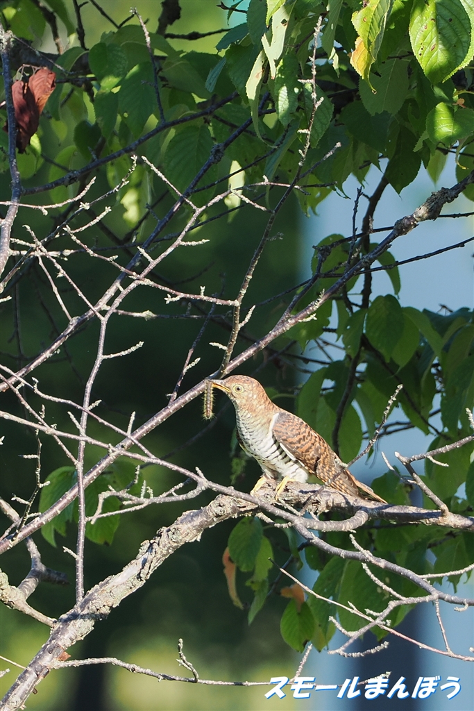 毛虫を食べに来たツツドリ(赤色個体)