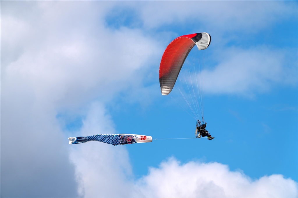 モーターパラグライダーが花を添えます