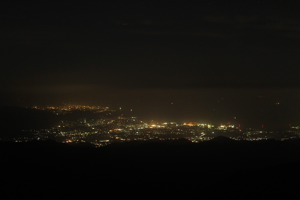 今治から新居浜辺りの夜景 上空に銀河鉄道も
