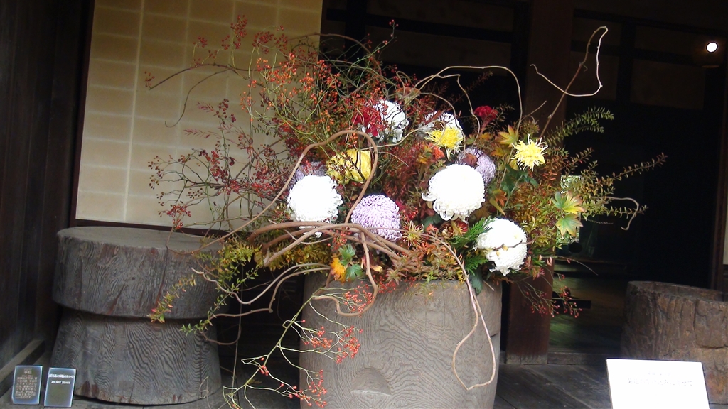 同 菊花展の延長 合掌造り内の生け花